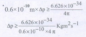 0.6 × 10−10 m × ∆p ≥ (6.626 × 10−34)/4π