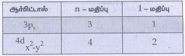 32. ஆர்பிட்டால் வரையறு. 3px மற்றும் 4dx2– y2 ஆர்பிட்டாலில் உள்ள எலக்ட்ரானுக்கு n மற்றும் l மதிப்புகளைக் கூறுக.