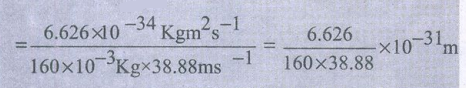 47. 140 km hr-1 வேகத்தில் பயணிக்கும் 160 g நிறையுடைய கிரிக்கெட் பந்து ஒன்றின் டிபிராலி அலைநீளம் (cmல்) கணக்கிடுக.