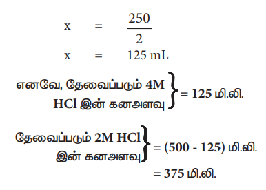 எனவே தேவைப்படும் 2M HCl இன் கன அளவு = (500 - x) மி.லி.