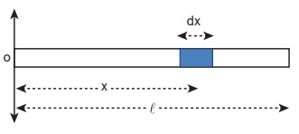M நிறையும் l நீளமும் கொண்ட சீரான நீள் அடர்த்தி கொண்ட (uniform rod) தண்டின் நிறை மையத்தைக் கண்க.