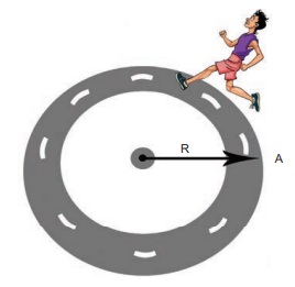 ஒரு தடகள வீரர் 50 m ஆரமுடைய வட்டவடிவ ஓடுபாதையில் மூன்று முறை சுற்றி வருகிறார், அவர் கடந்த தொலைவு மற்றும் அடைந்த இடப்பெயர்ச்சியைக் காண்க.