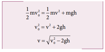 m நிறையுள்ள ஒரு பொருள் தரையிலிருந்து V0 என்ற தொடக்க வேகத்துடன் எறியப்படுகிறது. h உயரத்தில் அதன் வேகத்தைக் காண்க.