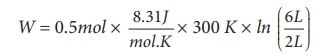 எனவே W = 1 × 8.3 × 300 × ln(2) = 1.7kJ