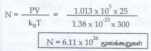 9. 25m3 பருமனுள்ள அறை ஒன்றின் வெப்பநிலை 27°C இவ்வறையினுள் உள்ள காற்று மூலக்கூறுகளின் எண்ணிக்கையைக் காண்க.
