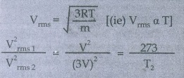 3. பழத்தர வெப்பநிலை மற்றும் அழுத்தத்தில், எந்த வெப்பநிலையில் வாயு ஒன்றின் சராசரி இருமடி மூல வேகம் அவ்வாயுவின் படித்தர வெப்பநிலை மற்றும் அழுத்தத்தில் உள்ள மதிப்பை போன்று மும்மடங்காக அதிகரிக்கும்? [படித்தர வெப்பநிலை T1 = 273K]