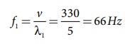 அடிப்படை அதிர்வெண் f1 க்கான அலைநீளம் λ1 = 2L = 2 × 0.8 = 1.6 m