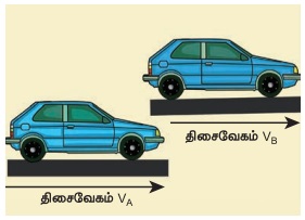 A காரினைப் பொருத்து B காரின் சார்புத் திசைவேகம்