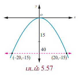 (−20, −15) மற்றும் (20, −15) என்ற புள்ளிகள் பரவளையத்தின் மீதுள்ளன.
