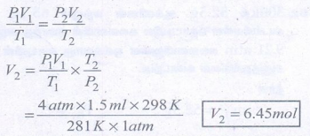 49) ஏரி ஒன்றில் ஒரு சிறிய குமிழி 6°C மற்றும் 4 atm உள்ள அடிப்புறத்தில் இருந்து 25°C மற்றும் 1 atm உள்ள மேற்பரப்பிற்கு வருகின்றது. அதன் ஆரம்ப கனஅளவு 1.5 ml எனில் இறுதி கனஅளவினை கண்டறிக.