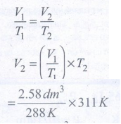 44) ஒரு வாயு 15°C யில் 1 atm அழுத்தத்தில் பெற்றுள்ள கனஅளவு 2.58 dm3 வெப்பநிலை 38°C யாக 1 atm அழுத்தத்தில் உயர்ந்தால் அதன் கனஅளவு அதிகரிக்குமா? எனில் அதன் இறுதி கனஅளவைக் கணக்கிடு