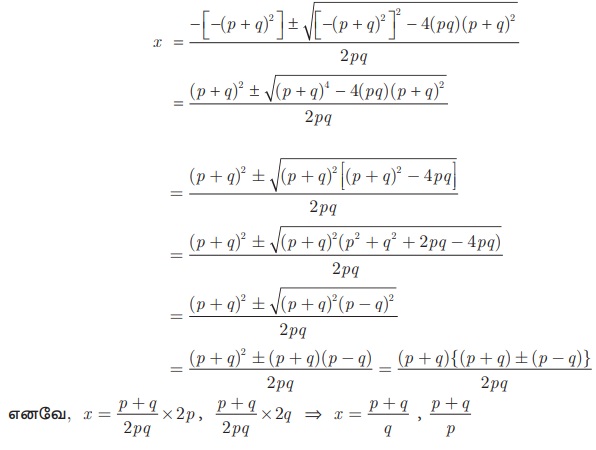 pqx 2 − (p +q)2 x + (p +q)2 = 0 -ஐ ax 2 + bx +c = 0 உடன் ஒப்பிட