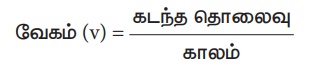 வேகம் (v) = கடந்த தொலைவு (d) / காலம் (t)