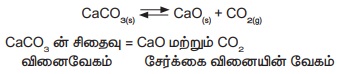 கால்சியம் ஆக்சைடாகவும், கார்பன் டை ஆக்சைடாகவும் மாறும் வினையைக் கருதுவோம். இந்த வினை ஒரு