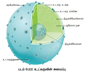 இது உள் மற்றும் வெளி என இரட்டைச் சவ்வினால் ஆன உட்கரு உறையைக் கொண்டுள்ளது.