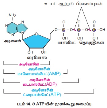 உயர் ஆற்றல் பிணைப்புகளால் இணைக்கப்பட்டுள்ளது (படம் 143). ஒரு ATP நீராற்பகுப்படையும்