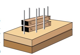 காந்தங்களின் ஒத்த துருவங்கள் ஒன்றையொன்று விலக்கும் என்பது நமக்குத் தெரியும். படத்தில் காட்டியவாறு ேேரண்டு சட்ட காந்தங்களை வைக்கவும். நீங்கள் என்ன காண்கிறீர்கள்?