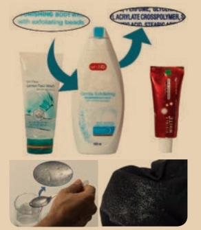 ஒரு ஷாம்பு, ஷவர் ஜெல் அல்லது மைக்ரோ பீட்கள் இருக்கலாம் என்று நீங்கள் கருதும் தயாரிப்புகளை எடுத்துக் கொள்ளவும். இதில் இரண்டு தேக்கரண்டி எடுத்து ஒரு குவளை நீரில் கலந்து நன்கு கலக்கவும். இதனை ஒரு கருப்புத் துணியில் ஊற்றி இதிலுள்ள மைக்ரோபீட்களை வடிகட்டவும்.