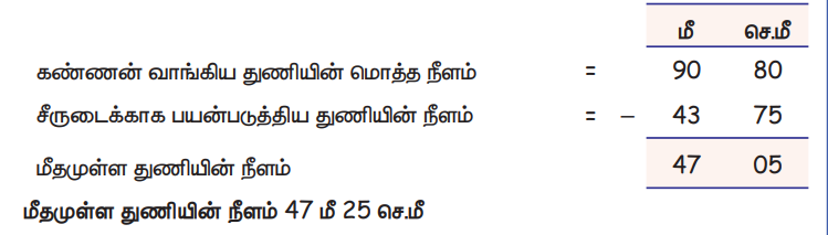 அளவைகள் | பருவம் 1 அலகு 4 | 5 ஆம் வகுப்பு கணக்கு - அளவைகளில் கழித்தல் | 5th Maths : Term 1 Unit 4 : Measurements