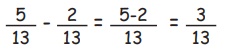 இங்கு பகுதிகள் சமம். அதாவது, எண் 13 ஆகும். எனவே, தொகுதியைக் கழித்தால் போதுமானதாகும்.