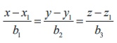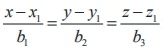9. (x1,y1,z1) எனும் புள்ளி வழியாகச்செல்வதும் b1, b2, b3 எனும் திசை விகிதங்களைக் கொண்ட வெக்டருக்கு இணையானதுமான நேர்க்கோட்டின் கார்டீசியன் சமன்பாடு