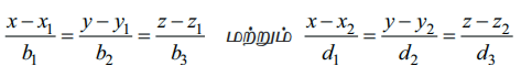 12. (x1,y1,z1) மற்றும் (x2,y2,z2) எனும் இரு புள்ளிகள் வழியாகச் செல்லும் நேர்க்கோட்டின் கார்டீசியன் சமன்பாடு