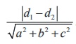 38. ax + by + cz + d1 = 0 மற்றும் ax + by + cz +d2 = 0 எனும் இணையான இருதளங்களுக்கு இடையேயுள்ள தொலைவு