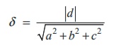 37. ஆதிப்புள்ளியிலிருந்து ax+by+cz+d=0 எனும் தளத்திற்கு உள்ள செங்குத்துத் தொலைவு