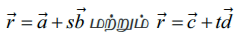 எனும் இணை அல்லாத இரண்டு நேர்க்கோடுகள் ஒரே தளத்தில் அமைவதற்கான நிபந்தனை (
