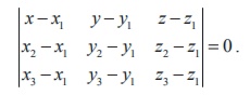 28. (x1,y1,z1), (x2, y2,z2), (x3,y3,z3) எனும் ஒரே கோட்டிலமையாத மூன்று புள்ளிகள் வழியாகச் செல்லும் தளத்தின் கார்டீசியன் சமன்பாடு
