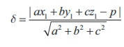36. (x1,y1,z1) எனும் புள்ளியிலிருந்து ax + by + cz=p எனும் தளத்திற்கு உள்ள செங்குத்துத் தொலைவு