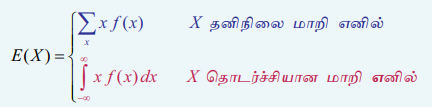 • ஒரு சமவாய்ப்பு மாறி X -இன் நிகழ்தகவு பரவல் சார்பு f (x) என்க. E(X) அல்லது – எனக்குறிப்பிடப்படும்