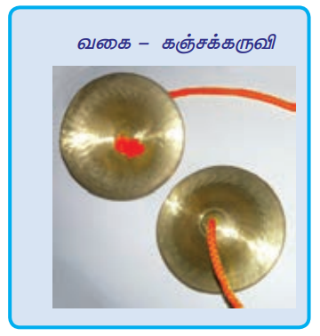 4. ஒன்றோடு ஒன்று மோதி இசைக்கப்படுபவை கஞ்சக்கருவிகள் எனப்படும். (எ.கா.) சாலரா, சேகண்டி