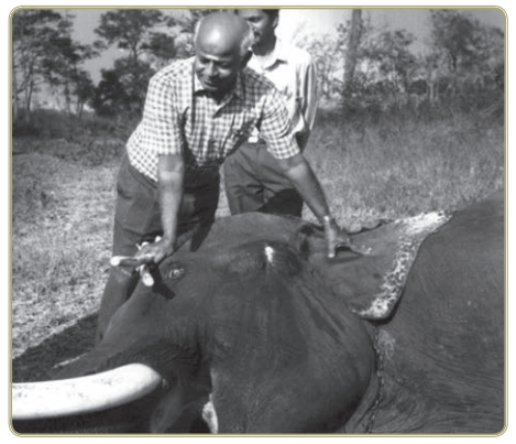 ஒருமுறை முதுமலையில் ஒரு யானைக்குக் கால் வீங்கி அது காட்டில் அலைவதாகத் தகவல் வந்தபோது டாக்டர் கே.யுடன் நானும் வனத்துறை அதிகாரி என்ற முறையில் சென்றேன். காட்டுக்குள் அந்த யானை இருக்குமிடத்தைக் குறும்பர் ஏற்கெனவே கண்டு வைத்திருந்தார்கள். அவர்களை ஏற்றிக்கொண்டு ஜீப்பில் காட்டுக்குள் நுழைந்தோம். அதுவும் பழங்காலக் குதிரைப்பாதைதான். நெடுந்தூரம் சென்றபின் ஜீப்பை நிறுத்திவிட்டு நானும் டாக்டரும் காட்டுக்குள் சரிவில் இறங்கிச் சென்றோம். துப்பாக்கியுடன் இரு வனக்காவலர்களும் மற்ற பொருள்களுடன் இரு குறும்பர்களும் எங்களுடன் வந்தார்கள். உடலை அறுக்கும் வேய்மூங்கில் இலைகளை அகற்றி டாக்டர் கே. முன்னால் சென்று கொண்டே இருந்தார். தரையிலுள்ள வேர் முடிச்சுகள் என் கால்களைத் தடுக்கின.