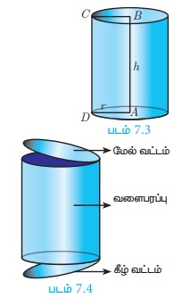 = 2πrh + πr2 + πr2 (படம்.7.4 -ஐ பார்க்க)