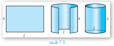 = 2πr ×h (இங்கு, l என்பது அடிப்பக்கத்தின் சுற்றளவு, b என்பது உயரம். படம் 7.5-ஐ பார்க்க)