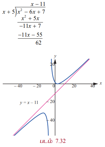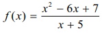 f(x) = x2 - 6x + 7 / x + 5 என்ற சார்பிற்கு சாய்ந்த தொலைத் தொடுகோட்டினைக் காண்க.