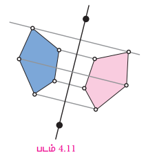 மேலேயுள்ள படங்களில் (படம் 4.10) முன் உருவானது ஒரு கோட்டைப் பொருத்து நிழல் உருவாகப் பிரதிபலிப்பு செய்யப்பட்டுள்ளது. அக்கோடு எதிரொளிப்புக் கோடு எனப்படும். இங்கு சிவப்பு நிறக்கோடுதான் எதிரொளிப்புக்கோடாகும்.