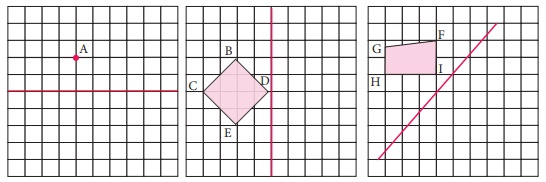 2. கொடுக்கப்பட்ட எதிரொளிப்புக் கோட்டைப் பொருத்து கொடுக்கப்பட்ட வடிவத்தை எதிரொளிப்பு செய்க.