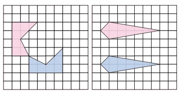 பின்வரும் சோடி உருவங்களின் உருமாற்றத்தை இடப்பெயர்வு, எதிரொளிப்பு அல்லது சுழற்சி முறையில் எழுதுக.