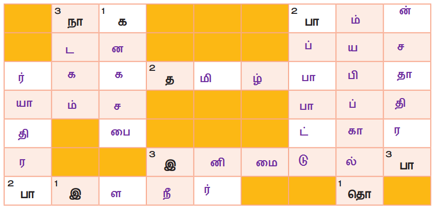 2. கீழ்வரும் குறுக்கெழுத்து புதிரில் உள்ள வினாக்களுக்குச் சிந்தித்துச் சரியான விடையைக் கண்டுபிடி.