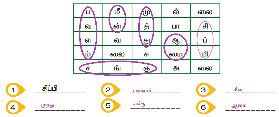 6. சரியான சொற்களை எடுத்துப் பொருத்துக