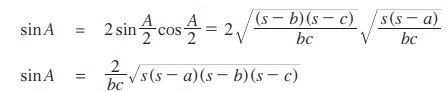 குறிப்பு: (i) விரிகோண முக்கோணத்தின் பரப்பளவு காணும் சூத்திரம் கூறுவது யாதெனில் இரண்டு பக்கங்களின் நீளங்கள் மற்றும் அவற்றிற்கு இடைப்பட்ட கோணத்தின் சைன் மதிப்பு ஆகியவற்றின் பெருக்கட்பலனில் பாதியாகும்.
