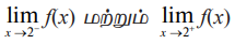 x−ன் மதிப்பு 2−ஐ இடப்பக்கமாக நெருங்கும்போது f(x)−ன் இடது எல்லை 7−ஆகவும், அதேபோல் x−ன் மதிப்பு 2−ஐ வலப்பக்கமாக நெருங்கும்போது f(x)−ன் வலது எல்லை 7−ஆகவும் உள்ளது என்று பொருள். இதனைப் பின்வருமாறு எழுதலாம் :