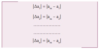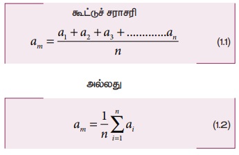 ஒரு சோதனையில் n எண்ணிக்கையில் எடுக்கப்பட்ட அளவீடுகள் a1, a2, a3, ……………….an எனில்,