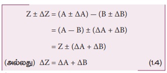 A -ன் அளவிடப்பட்ட மதிப்பு = A ± ΔA