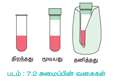 அமைப்பு என்பது ஒரு முகவையில் உள்ள நீர், காற்று நிரப்பப்பட்ட பலூன், குளுக்கோசின் நீர்க்கரைசல் போன்றவையாக இருக்கலாம்.