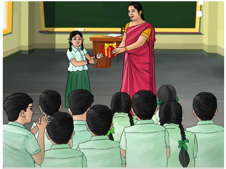 நாம் விதைக்கும் விதைகளில் முயற்சியுடன் மண்ணைப் பிளந்து கொண்டு வருபவையே செடிகளாகின்றன. தயங்கி நிற்பவை தங்கி விடுகின்றன. அதுபோல கவியரசி தயங்காமல் துணிச்சலாகச் செயல்பட்டதால் வெற்றி பெற்றாள் எனக் ஆசிரியை கூறினார். கவியரசிக்குப் பாராட்டுகளையும் பரிசுகளையும் வழங்கினார். கவியரசியும் மகிழ்ச்சியடைந்தாள்.