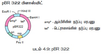 pBR 322 மறுக்கட்டமைக்கப்பட்ட பிளாஸ்மிட் ஆகும். இது நகலாக்க தாங்கிக்கடத்தியாக அதிகமாகப் பயன்படுத்தப்படுகிறது. இது 4361 bp கொண்டுள்ளது. pBRல் p என்பது பிளாஸ்மிட், B மற்றும் R முறையே பிளாஸ்மிட் உருவாக்கிய அறிவியல் அறிஞர்களின் பெயர்களான பொலிவர் மற்றும் ரோட்டிரிகஸ் ஆகிய இருவரையும் குறிக்கின்றன. 322 என்ற எண் அவர்களுடைய ஆய்வகத்தில் உருவாக்கப்பட்ட பிளாஸ்மிட்டின் எண்ணிக்கையாகும். இதில் இரண்டு வேறுபட்ட உயிரி எதிர்ப்பொருள் தடுப்பு மரபணுக்களும் (ampR , tetR), பல தடைகட்டு நொதிகளுக்கான (Hind II, EcoRI, BamH I, Sal, I, PvuII, PstI, Cla1) அடையாளக்களங்களும் மற்றும் Ori மரபணுவும் உள்ளன. பிளாஸ்மிட் பெருக்கமடைவதில் ஈடுபடும் புரதங்களும் Rop குறியீடு செய்கிறது.