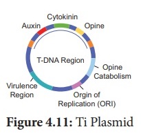 இந்த பிளாஸ்மிட் பெற்றுள்ளது. Ti பிளாஸ்மிட்டின் - DNA தாவர - DNA உடன் நிலையாக ஒருங்கிணைக்கப்படுகிறது.